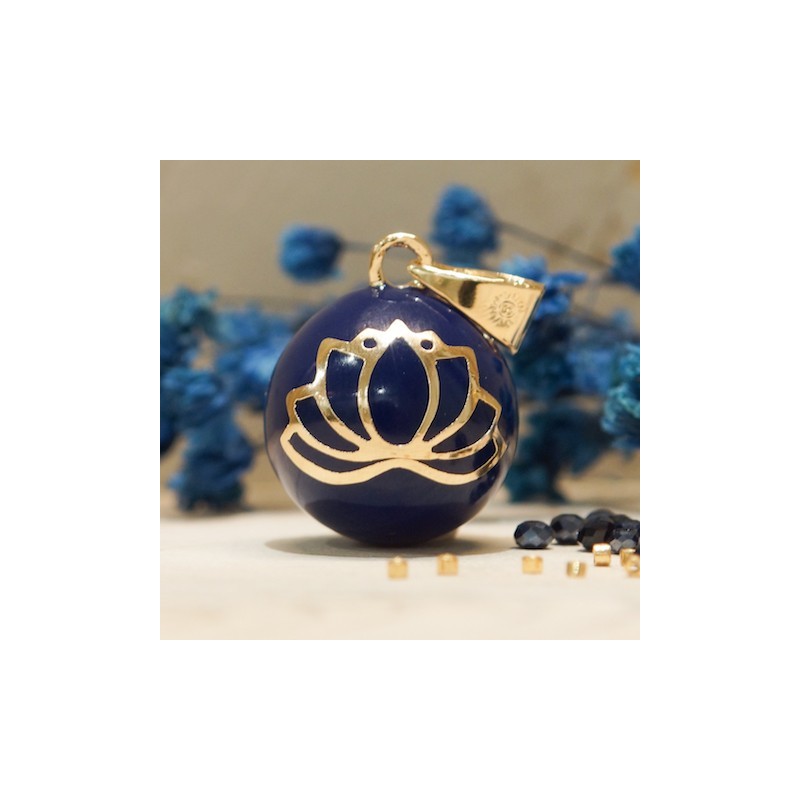 Inspired by the mysterious elegance of the night, the Lotus Flower Midnight Gold Plated Pregnancy Bola is a refined expression of the intimate bond between an expectant mother and her child. The profound midnight blue calls forth the tranquility of the starry sky, offering a note of harmony that accompanies mothers-to-be on their wonderful journey toward maternity.