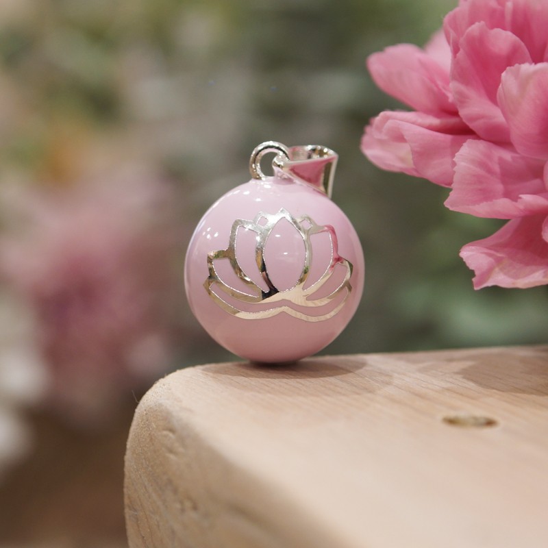Pregnancy Bola Lotus Flower Mauve Silver Plated